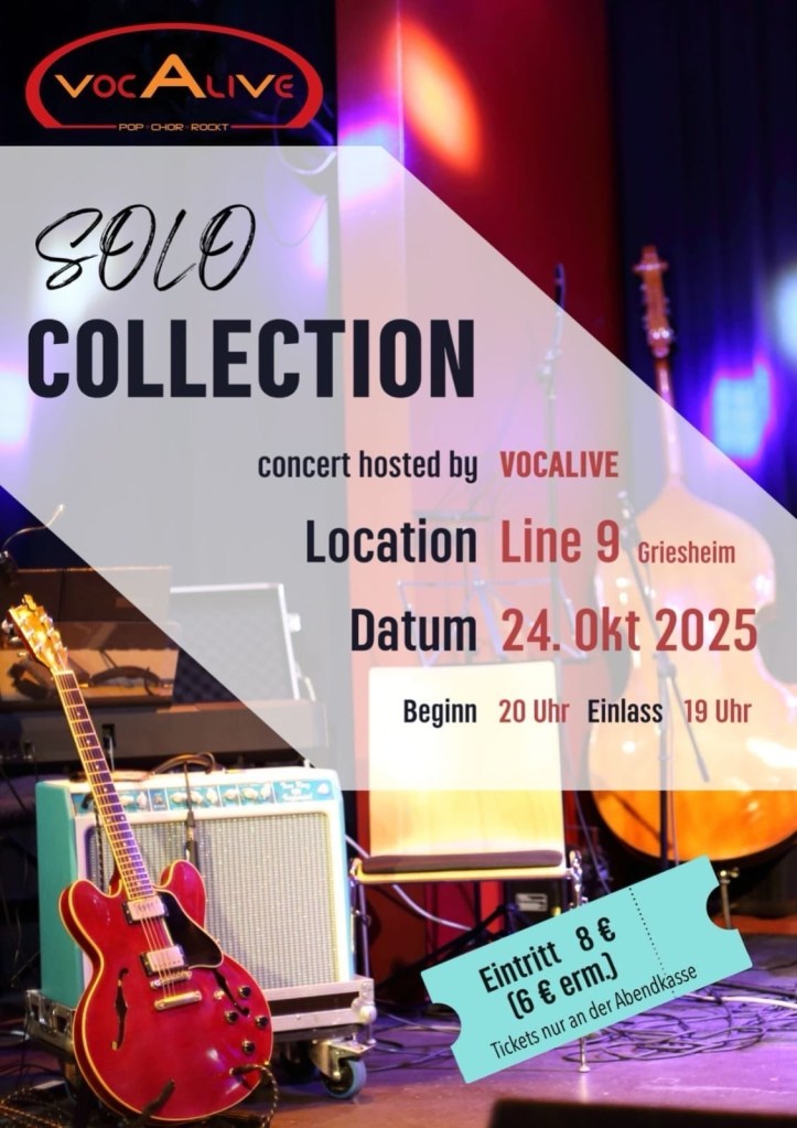 Am 24. Oktober darf ich mich in meiner alten Heimat dann wieder einmal ein wenig dem Jazz zuwenden. In Griesheim bei Darmstadt beteiligen wir uns mit Kuchen am Pool mit drei Titeln an der Solo Collection des VOCALIVE Pop Chors. Bei der Solo Collection stellen einzelne Sängerinnen und Sänger von VOCALIVE Solostücke oder Ensemblebeiträge vor und da unser Bassist Chormitglied ist, sind wir gerne mit von der Partie.